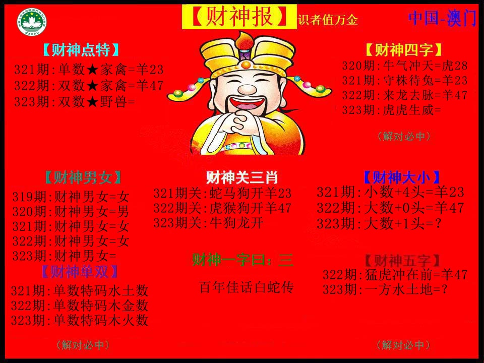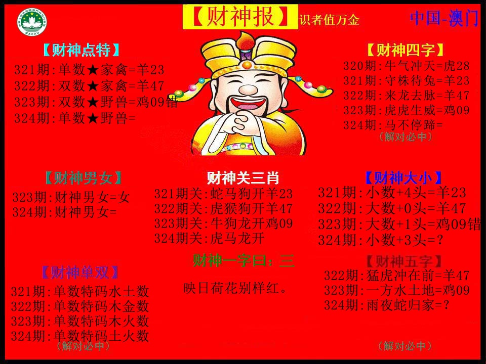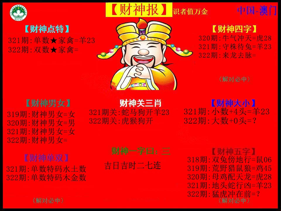 | 321期: 买啥都中 【地肖地肖地肖】开:羊23准 |