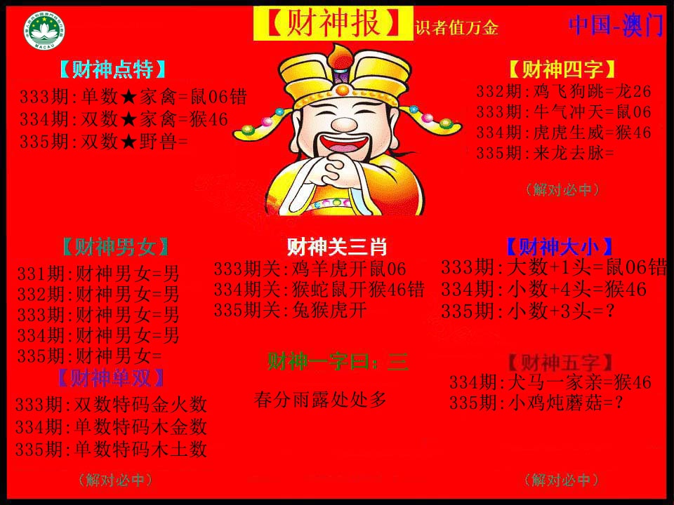 335期: 买啥都中 【男肖男肖男肖】开:狗44
